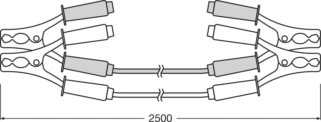 Startkablarna är tillverkade av kopparbelagd aluminium, vilket ger lågt elektriskt motstånd och säkerställer en jämn och effektiv strömöverföring. Med en längd på 2,5 meter och en tvärsnittsarea på 6 mm² är startkabeln anpassad för bensinmotorer upp till 1,6 liters cylindervolym. Den klarar en toppström på upp till 150 A samt en kontinuerlig strömstyrka på 75 A, vilket gör den idealisk som startkabel för bil i vardagliga situationer.