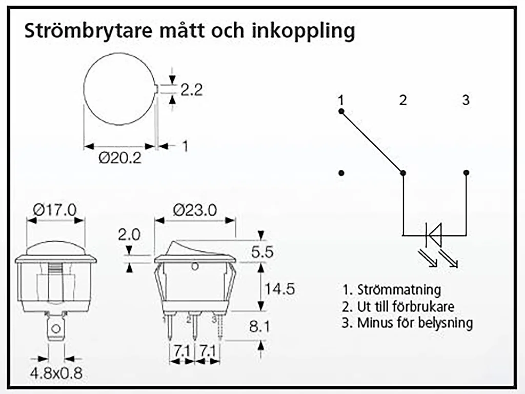 Smidig och pålitlig 12 V strömbrytare i 3-steg (1-0-2) – perfekt för styrning av extraförbrukare i fordon, maskiner och andra 12-voltsinstallationer. Den kompakta designen gör den enkel att montera och ger en tydlig och lättanvänd manövrering.