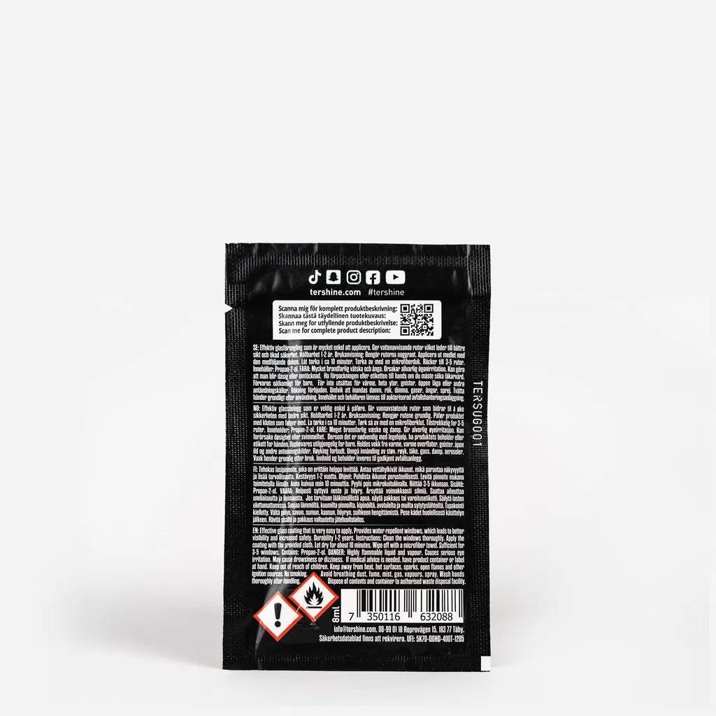 Sellado de vidrios muy eficaz (tratamiento/recubrimiento) de fácil aplicación. Proporciona ventanas repelentes al agua, lo que mejora la visibilidad y aumenta la seguridad. El producto tiene una vida útil de hasta 2 años (más de 3200 km) y alcanza para 3 a 5 ventanas, según el tamaño.
