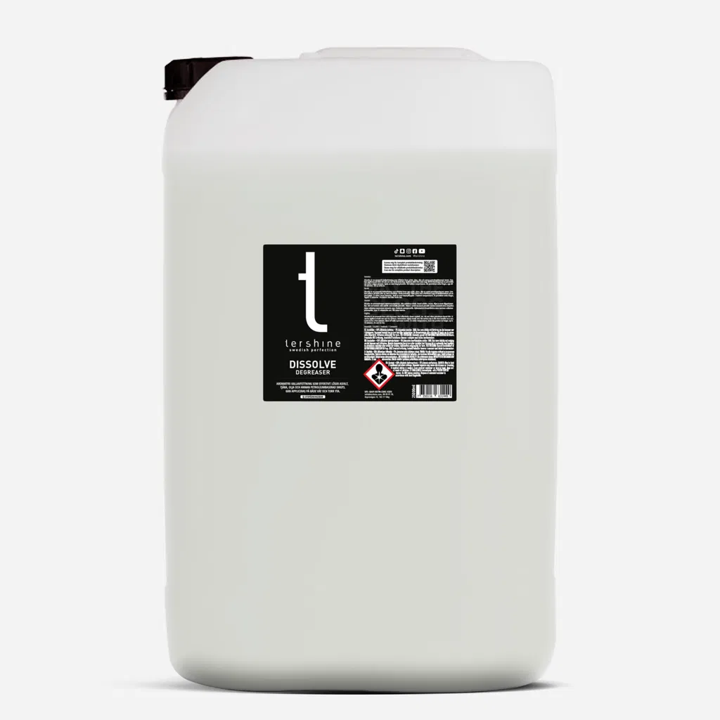 Dissolve 25 l es un desengrasante en frío de bajo aroma (prácticamente imperceptible) que disuelve eficazmente asfalto, aceite y otras manchas derivadas del petróleo. Puede aplicarse tanto en superficies húmedas como secas. Hemos optado por una fórmula suave pero igualmente eficaz que minimiza el riesgo de daños o problemas. Esto significa que puede y debe permanecer en el agua un poco más de tiempo que otros productos. Por supuesto, esto no le resta eficacia.
