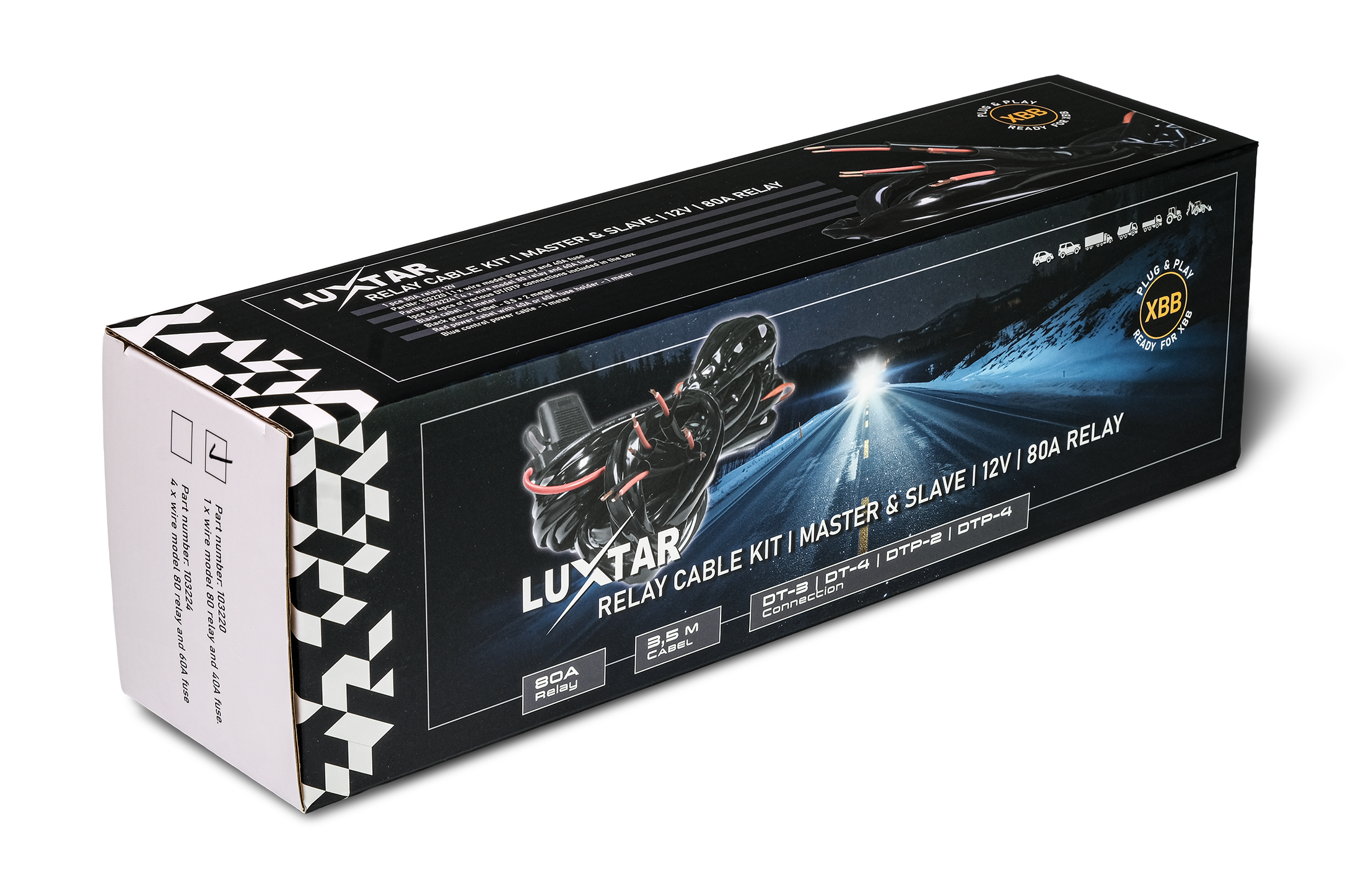 De Plug & Play-oplossing van Luxtar is daarom uitgerust met een krachtig 80A-relais (slave-relais) en een extra relaishouder voor aansturing via de XBB PowerUnit.
