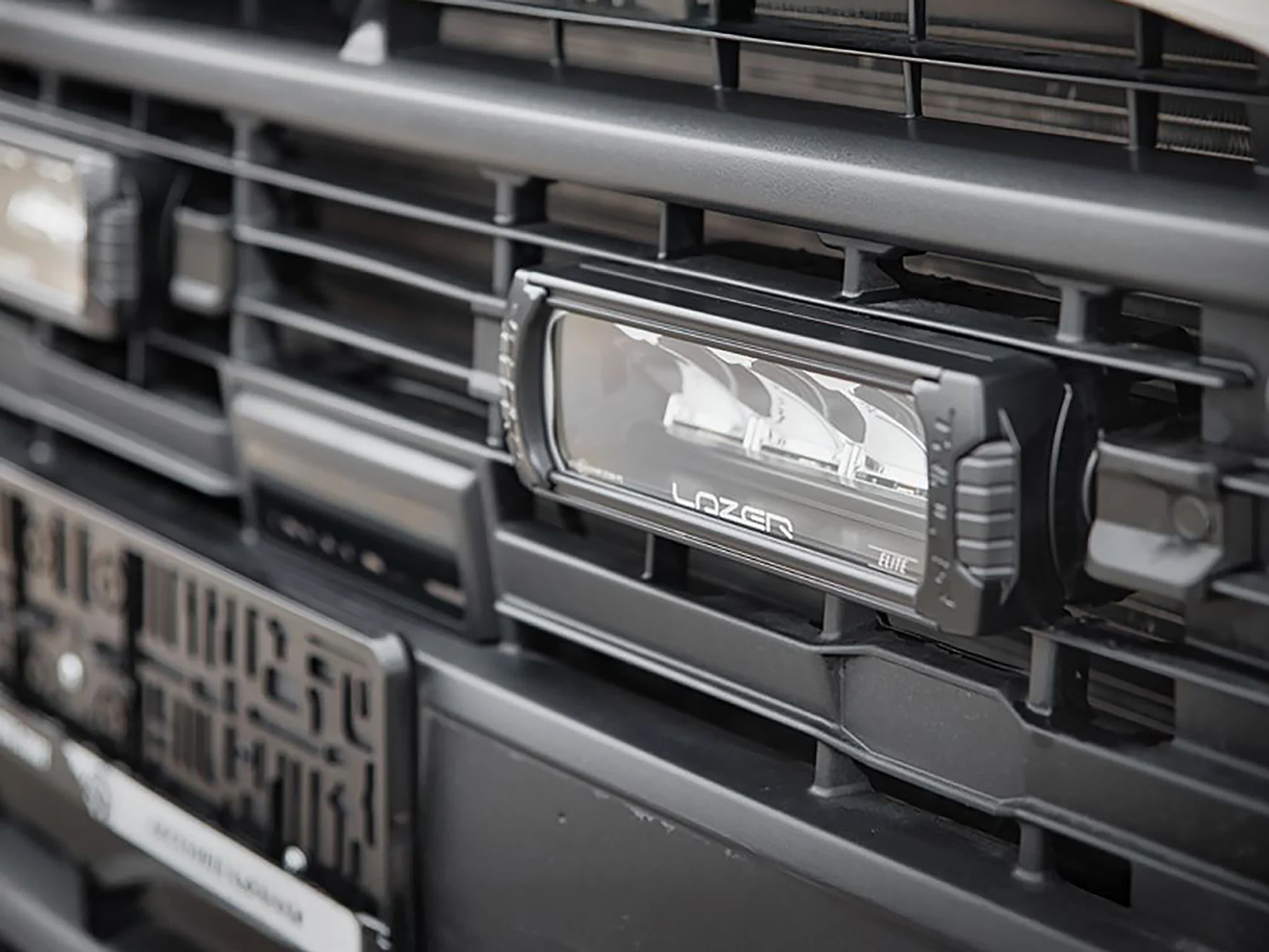 De medfølgende brakettene er presisjonskonstruert for å passe sømløst inn i kjøretøyets originale grill. Laget av UV-stabilt og høyfast komposittmateriale, noe som sikrer langvarig holdbarhet selv under tøffe værforhold. Installasjonen er enkel og sikker takket være den medfølgende ledningsnettet og tyverisikringsskruene.