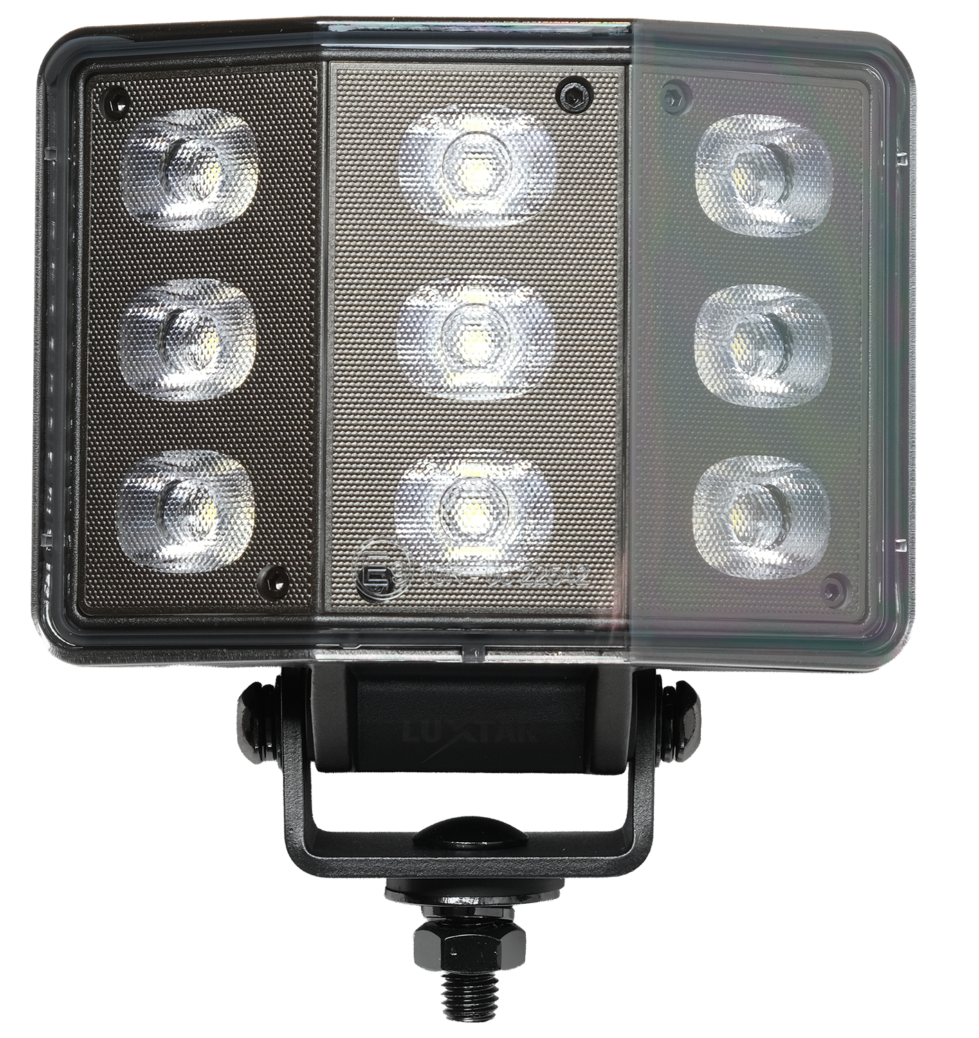 • Vinklat arbetsljus med “3-i-1” optiskt system – Optimal balans mellan ljusbredd, intensitet och effektivitet